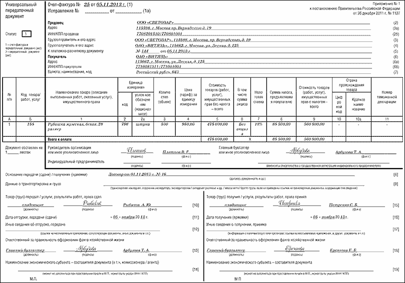 Универсальный передаточный документ (УПД)