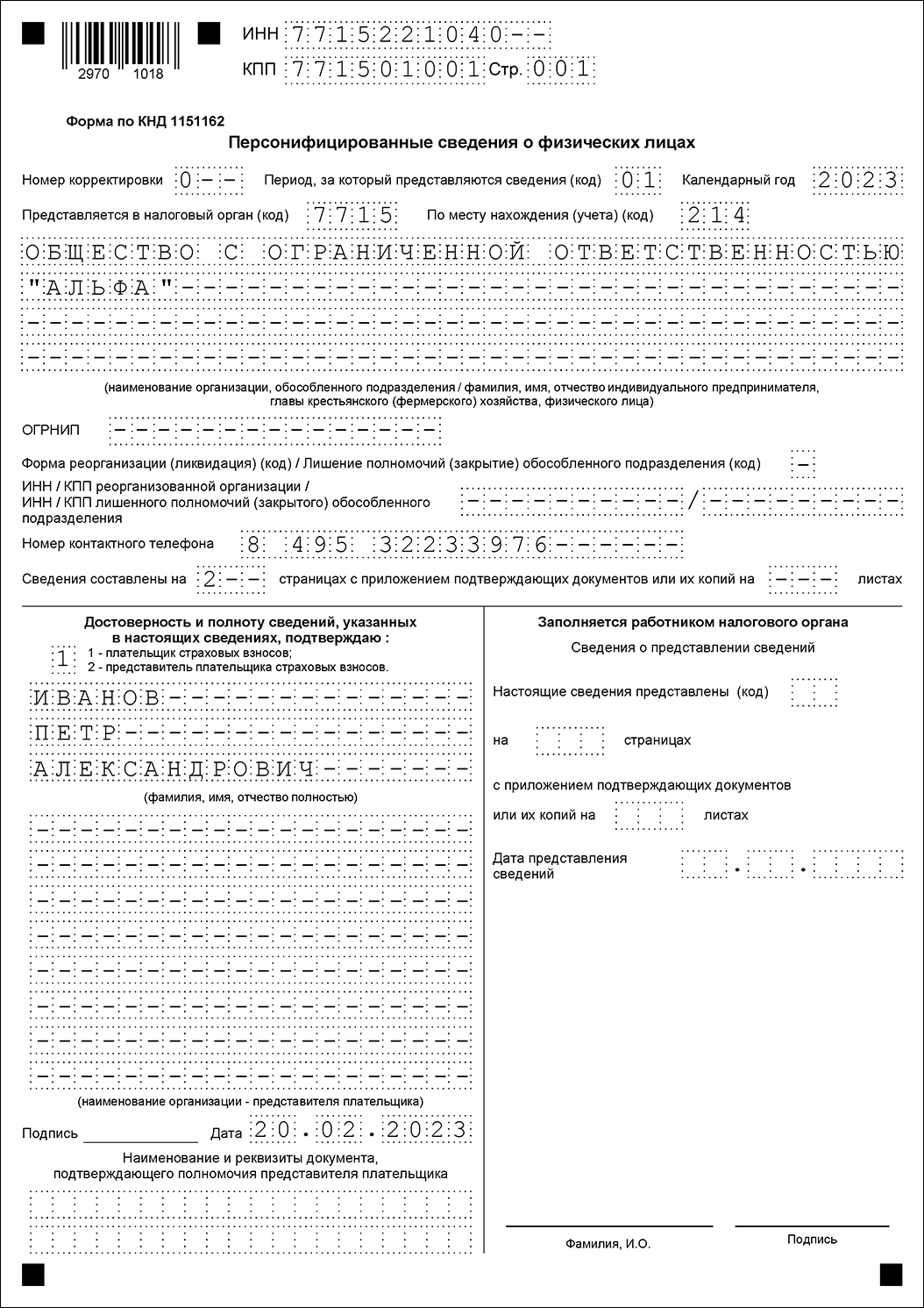 Персонифицированные сведения о физических лицах (отчет с января 2023 года)