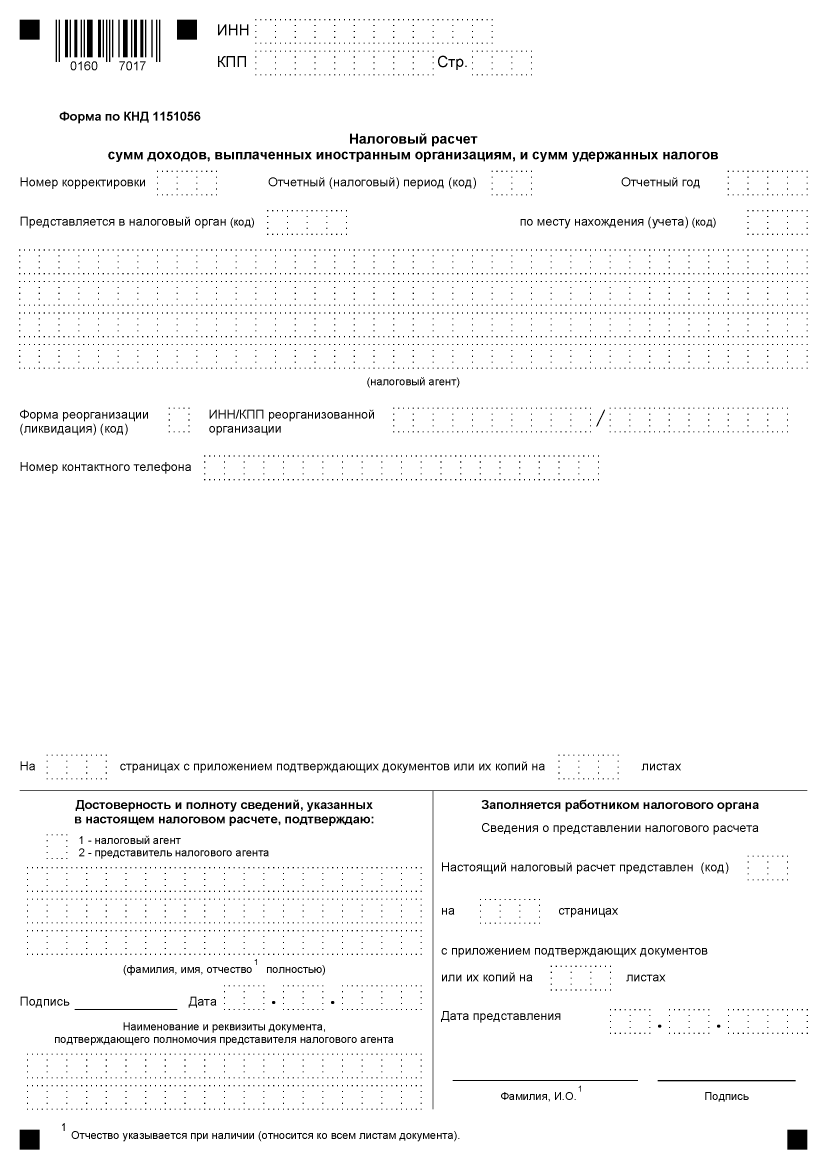 Налоговый расчет о суммах выплаченных иностранным организациям доходов и удержанных налогов